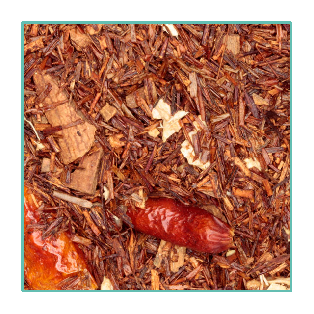 Een pittige rooibos met chilipepertjes gember en kaneel. Deze rooibos is rijk aan vitamine C, looizuurarm en cafeïnevrij.